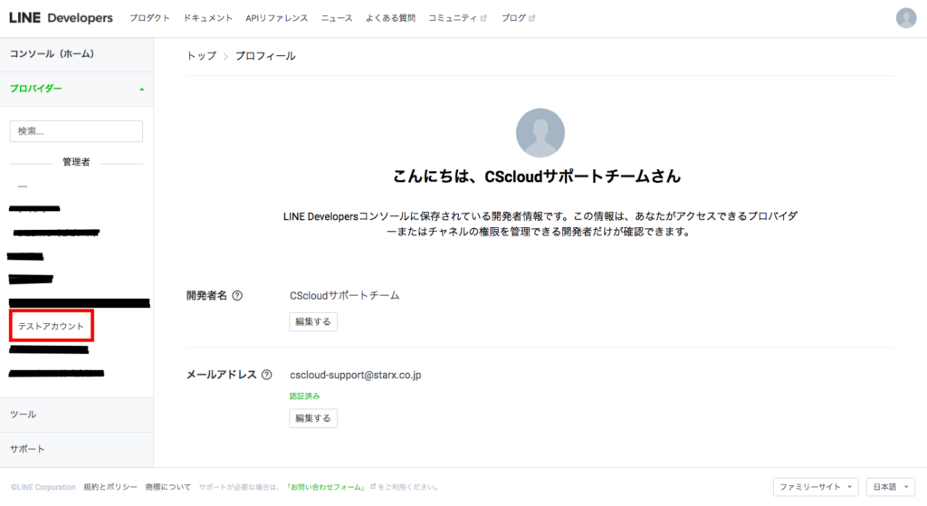 上記のリンクをクリックして頂く事でLINE Developersのページに移動し、以下の流れでチャネルID・チャネルシークレットをご確認頂けます。