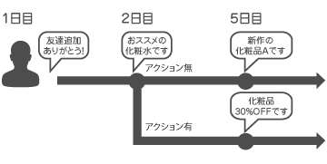 ステップ配信は、お友だち追加されたLINEユーザーに対して、起点日を基に数日間隔でメッセージを個別に配信できる機能です。